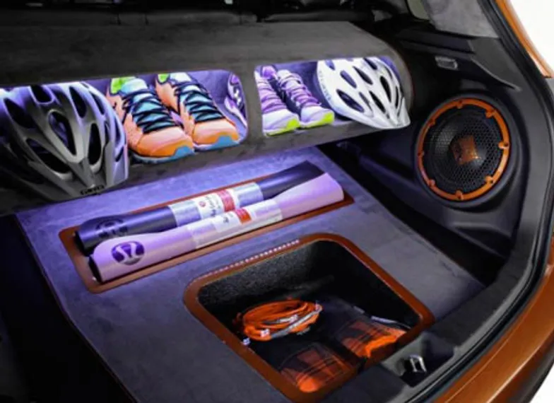 В его интерьере так же использованы кожа и замша, вставки в тон кузову. В салоне тематика спорта передается также за счет таких дополнений как наличие мини гантель.