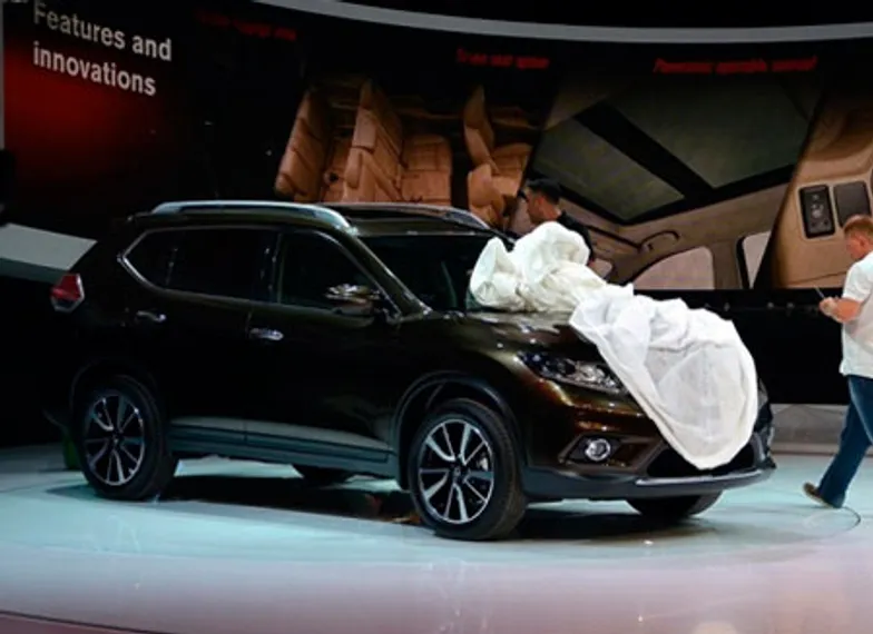Китайские журналисты успели снять внедорожник на стенде Nissan в выставочном комплексе во Франкфурте.