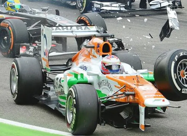 Авария пилота «Форс-Индии» Пола ди Ресты на первом круге GP Италии оказалась запечатлена на термальную камеру, которой был оснащен его болид.