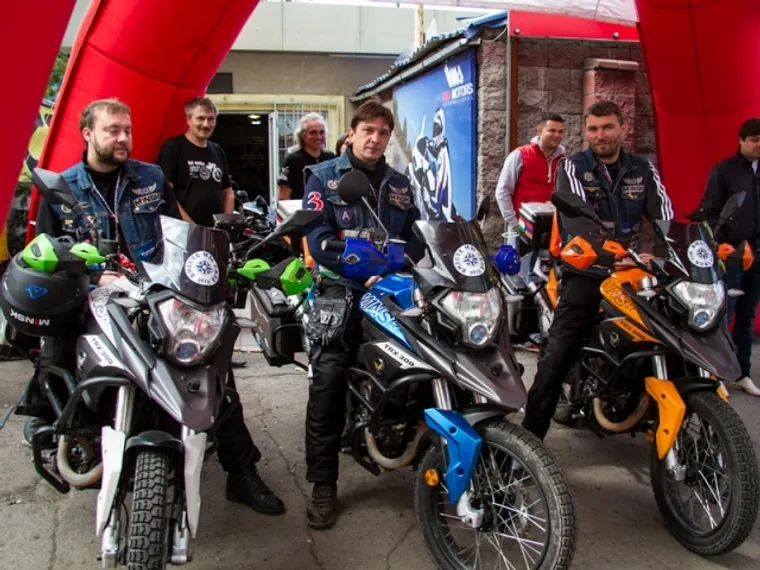 Колонна мотопробега состоит из команды байкеров - Александра Косарева, Алексея Наздратенко и Александра Бордюжа - на мотоциклах M1NSK, а также группы сопровождения на внедорожниках.
