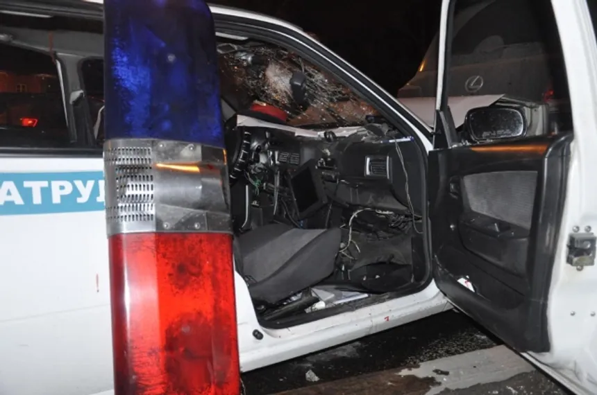 В Алматы водитель автомашины Mercedes, не справившись с управлением, врезался в автомобиль дорожно-патрульной службы; пострадали двое полицейских, сообщила пресс-секретарь ДВД города Салтанат Азирбек.