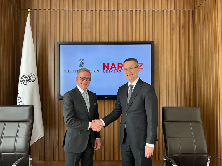 Генеральный директор отеля The Ritz-Carlton Astana Кристоф Шляйссинг и президент Университета Нархоз Мирас Дауленов объявили об открытии совместной программы гостеприимства.
