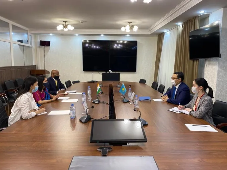 Вице-министр торговли и интеграции РК Кайрат Торебаев встретился с послом Индии в Казахстане Шубдаршини Трипати. Обсуждалась повестка XIV заседания казахстанско-индийской межправительственной комиссии по торгово-экономическому сотрудничеству, сообщает пресс-служба Министерства торговли и интеграции РК.