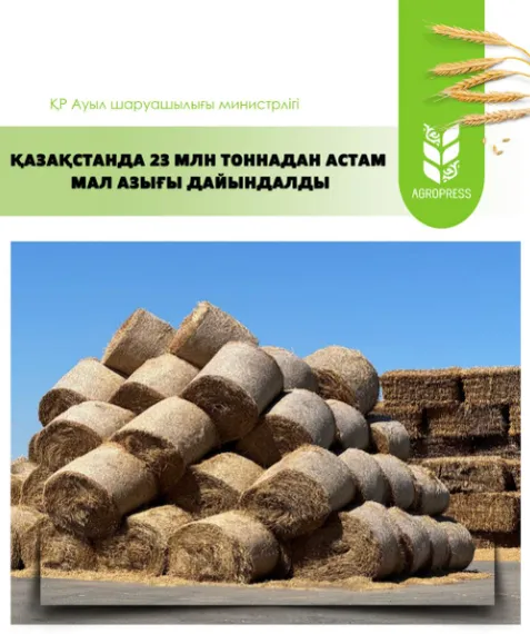 Как отмечают в МСХ, в преддверии зимовки 2025-2026 годов продолжается активная работа по заготовке кормов для сельскохозяйственных животных. По информации местных исполнительных органов, заготовлено 19,5 млн тонн сена (79,6% от плана), 1,5 млн тонн сенажа (89,2%), 620,8 тыс. тонн концентратов (11,1%), 1,28 млн тонн соломы (27,6%), 367,1 тыс. тонн силоса (18,1%).