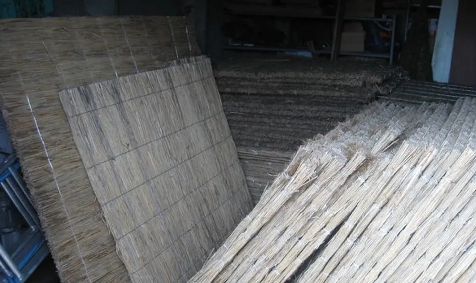 Мини-завод предлагает всем желающим камышитовые плиты размерами 270х70х10 сантиметров, плотностью 80%, причем каждая плита для прочности и долговечности в пяти местах «прошита» металлической проволокой.