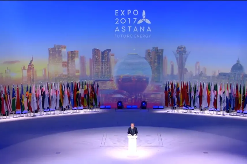 «Выставка такого масштаба — это не только усилия одного государства, это труд международного сообщества, представляющего свои достижения на этой выставке. Международная выставка ЭКСПО в Астане — это новая вершина продвижения нашей страны — национального бренда „Казахстан“ — к глобальным пространствами. Сегодня мы стоим на пороге новых открытий в сфере эффективной безопасной энергии. Уверен, наша выставка внесёт свой уникальный вклад в этот глобальный процесс», — заявил он.