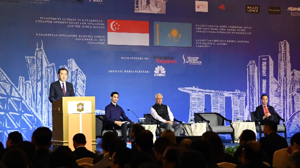 Премьер-министр Бакытжан Сагинтаев, выступая на пленарной сессии «Роль Казахстана в меняющейся Евразии» отметил, что Сингапур стал одним из важнейших торгово-экономических партнеров Казахстана в Юго-Восточной Азии. На сегодня совместные предприятия работают в сферах обрабатывающей промышленности, торговли, информационно-коммуникационных технологий, строительства и финансов. Вместе с тем, участникам бизнес-форума рассказали о новых возможностях инвестирования в Казахстан. Обозначен потенциал для наращивания сотрудничества по таким направлениям, как инновации, транспорт и логистика, жилищное строительство, а также по развитию обрабатывающей промышленности и несырьевого экспорта.