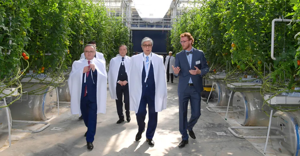 Глава государства осмотрел тепличный комплекс ТОО «Green Capital Kazakhstan», на котором выращивается до 3 тыс. тонн овощей в год. С работой предприятия президента ознакомил генеральный директор Дирк Алевен. Площадь первой очереди тепличного комплекса составляет 5 га и официально введена в эксплуатацию 4 апреля 2019 года. В этот же день был собран первый урожай помидоров. В 2019 году планируется реализация второго этапа проекта — строительство блока теплицы еще на 5 гектарах. На третьем этапе в 2020-2021 годах возведут последние две секции по 5 гектаров каждая. В общей сложности тепличный комплекс разместится на площади 21,7 гектара (площадь под овощи — 20 гектаров).