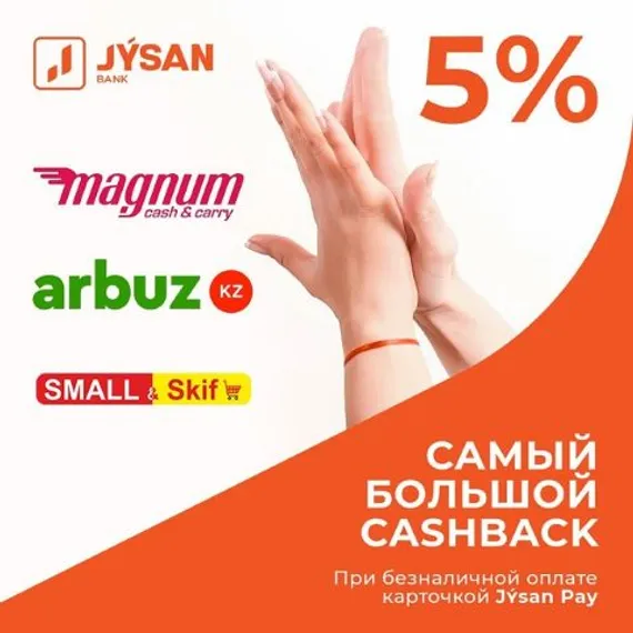 Решение. Если у вас еще нет карты Jŷsan Pay -оформите онлайн-заявку на карту в мобильном приложении Jŷsan24 и пользуйтесь 5% Cashback на период с 1 июля по 31 августа 2019 года.