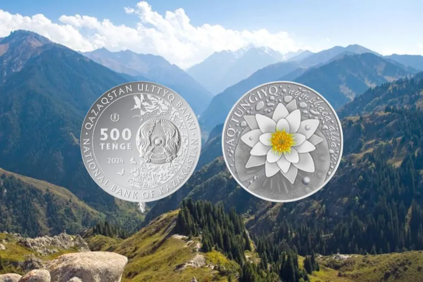 AQ TUŃǴIYQ (Кувшинка белая) — редкий для Казахстана цветок, занесённый в Красную книгу. Впервые будет применена новая технология, при которой монета заполняется прозрачной эмалью, создающей эффект водной поверхности с песчаным дном и камнями.