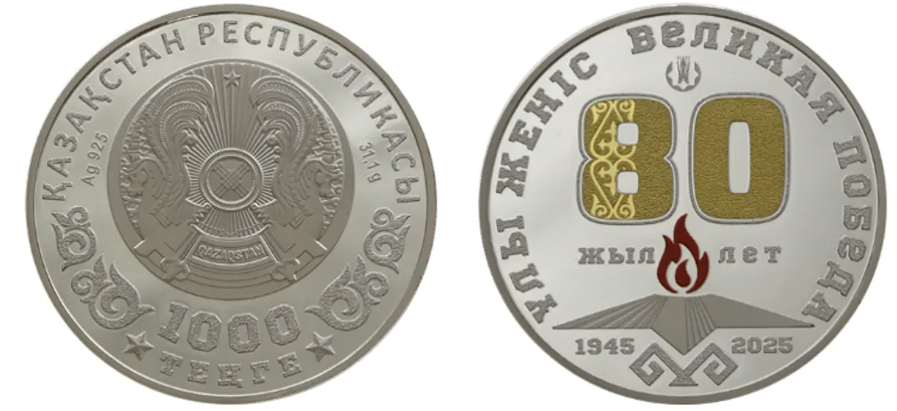 Стали известны сроки начала продаж коллекционных монет ҰЛЫ ЖЕҢІС. 80 ЖЫЛ