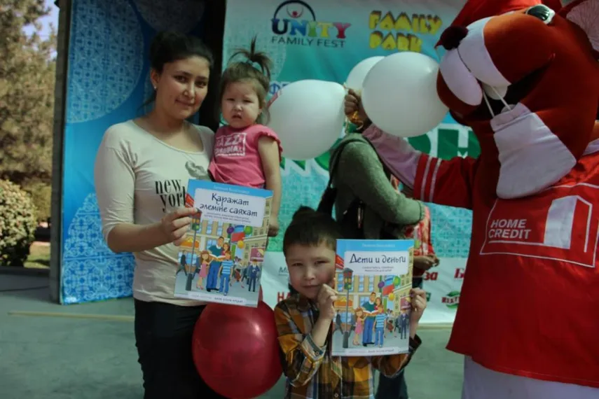 В марте 2014 года Банк Хоум Кредит принял участие в международной неделе GlobalMoneyWeek - ежегодном событии по повышению общественного внимания к вопросам финансового образования, финансовой грамотности и финансовой интеграции детей и молодежи, которое проводится международной организацией ChildandYouthFinance International. Был проведен игровой семинар на тему «Семейный бюджет» для учеников 3-го класса алматинской школы гимназии. Представители Банка рассказали школьникам историю денег, что такое планирование, бюджет, расход и доход, что делать, чтобы суметь осуществить свою мечту и многое другое. Мероприятие откликнулось не только у самих участников, но и у учителей и родителей. Позднее они стали первыми читателями книг «Тенге-бала» и «Дети и деньги», изданной по инициативе банка.