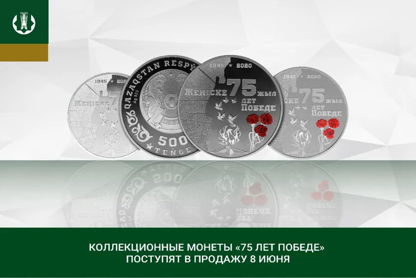 Коллекционные монеты «75 лет Победе» из серебра номиналом 500 тенге, из сплава мельхиор номиналом 100 тенге и из сплава нейзильбер номиналом 100 тенге поступят в продажу с 8 июня 2020 года, сообщает центр деловой информации Kapital.kz со ссылкой на пресс-службу Национального банка.