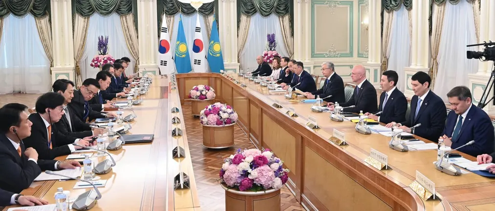 В ходе переговоров с участием делегаций двух стран президент Касым-Жомарт Токаев назвал первый государственный визит Юн Сок Ёля в Казахстан историческим событием.