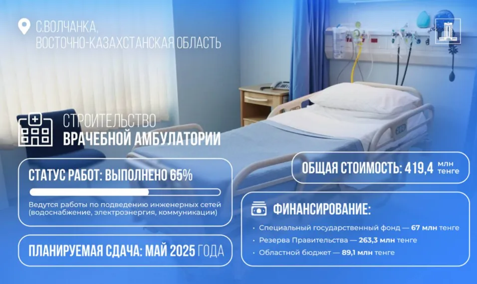 В рамках исполнения поручений главы государства по развитию социальной инфраструктуры продолжается возведение объектов, финансируемых за счет возвращенных в страну незаконно выведенных активов. Правительством принято решение о выделении из Специального государственного фонда порядка 67 млн тенге на завершение работ по возведению врачебной амбулатории в селе Волчанка Шемонаихинского района Восточно-Казахстанской области, передает пресс-служба премьер-министра.