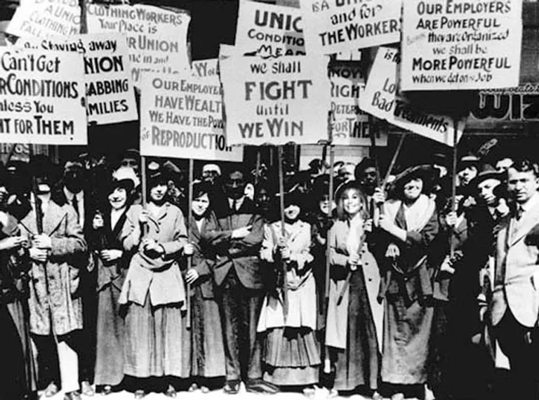 8 марта 1857 г. женщины, работающие на фабриках по выпуску одежды и текстиля (которых называли «дамскими портными») в г. Нью-Йорке, США, приняли участие в акции протеста. Они боролись против бесчеловечных условий труда и низкой зарплаты. Полиция набросилась на протестовавших и рассеяла их. Два года спустя, снова в марте, эти женщины сформировали свой первый профсоюз, чтобы попытаться защитить себя и добиться соблюдения на рабочих местах некоторых основных прав.