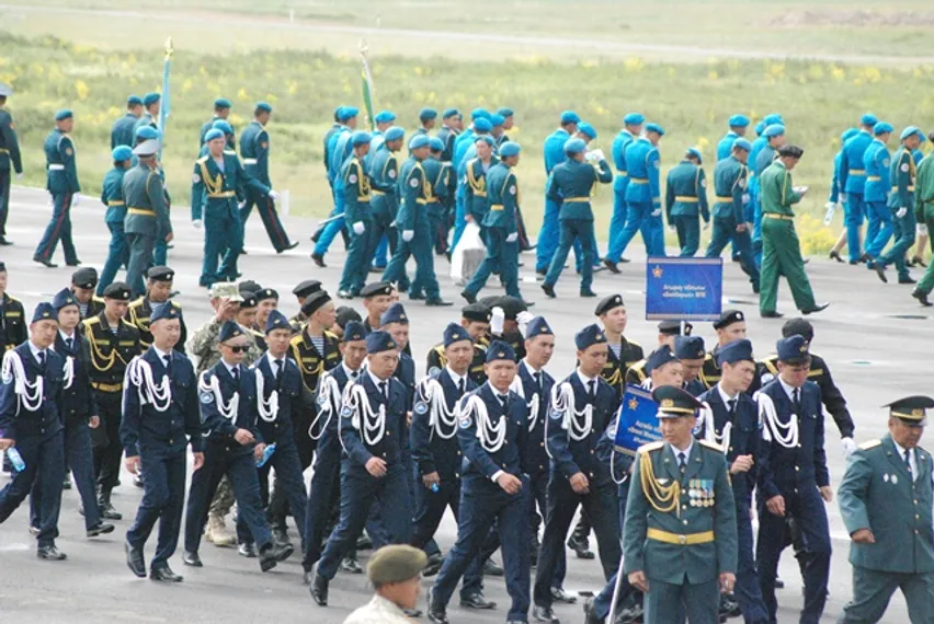 Что касается парашютистов, выброшенных в небо с казахстанским национальным флагом и весьма удачно приземлившихся с ним прямо перед министром обороны Имангали Тасмагамбетовым, то свой прыжок они осуществили с вертолета российского производства Ми-8/Ми-17.