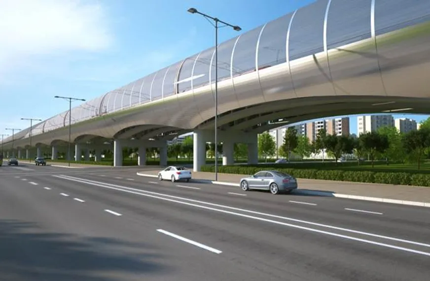 По проекту поезда будут прибывать сразу внутрь здания. Для этого возводится крытая металлическая железнодорожная эстакада длиной 2550 метров. В настоящее время установлено 87 опор, смонтировано 17 300 тонн (69%) металлических пролетных строений.
