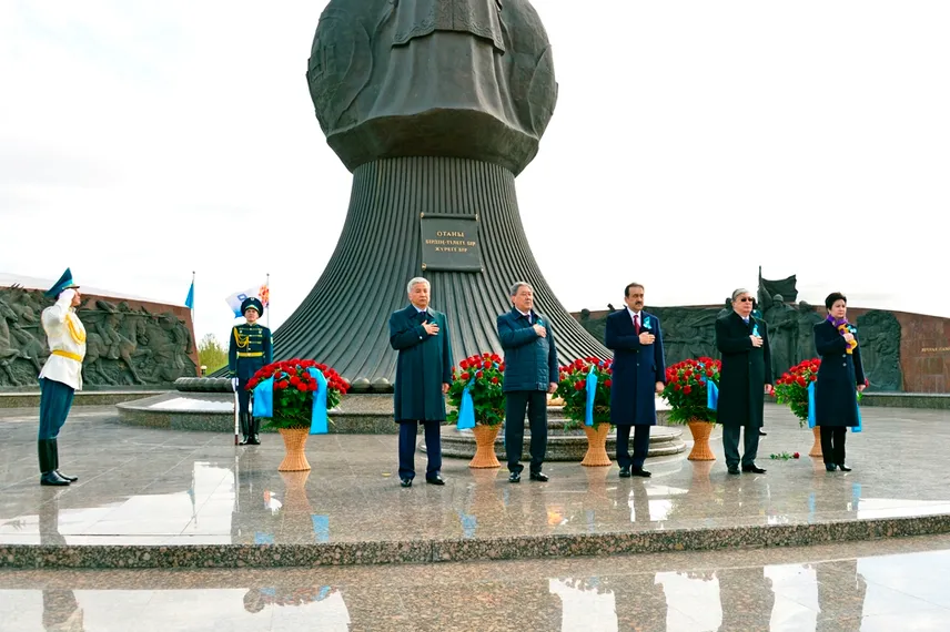 В Астане 9 мая состоялась торжественная церемония возложения цветов к монументу «Отан корғаушылар». В церемонии приняли участие премьер-министр Казахстана Карим Масимов, председатель Сената Парламента Касым-Жомарт Токаев, спикер нижней палаты Парламента Бактыкожа Измухамбетов, государственный секретарь Гульшара Абдыкаликова, министр обороны Имангали Тасмагамбетов, ветераны войны и труда, руководители государственных органов, а также жители и гости столицы, прибывшие почтить память погибших в годы Великой Отечественной войны казахстанцев, об этом центру деловой информации Kapital.kz сообщили в пресс-службе Министерства обороны.