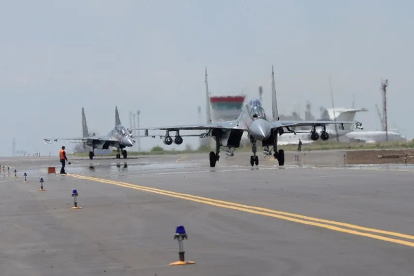 С аэродромов Талдыкорган и Шымкент перебазированы самолёты Су-25, Су-27, которые также будут продемонстрированы на выставке «KADEX-2016».