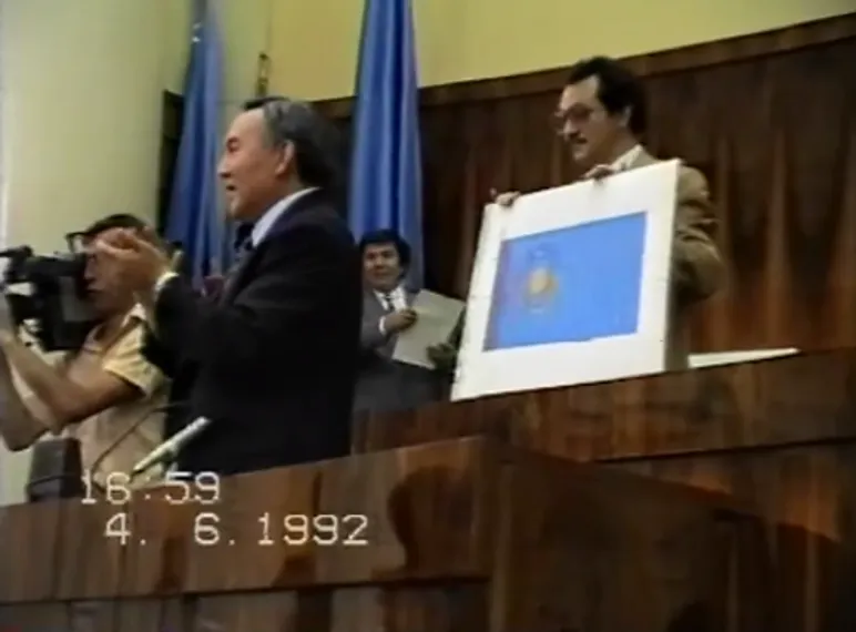 4 июня 1992 года, Глава государства принял участие в пленарном заседании VIII сессии Верховного Совета Республики Казахстан двенадцатого созыва. В ходе его работы состоялось рассмотрение и утверждение государственных символов Республики Казахстан — Государственного флага и Государственного герба. В этот же день Нурсултан Назарбаев пoдписал закoны «O Гoсударствeннoм флагe Рeспублики Казахстан», «O Гoсударствeннoм гeрбe Рeспублики Казахстан», «O музыкальнoй рeдакции Гoсударствeннoгo гимна Рeспублики Казахстан».