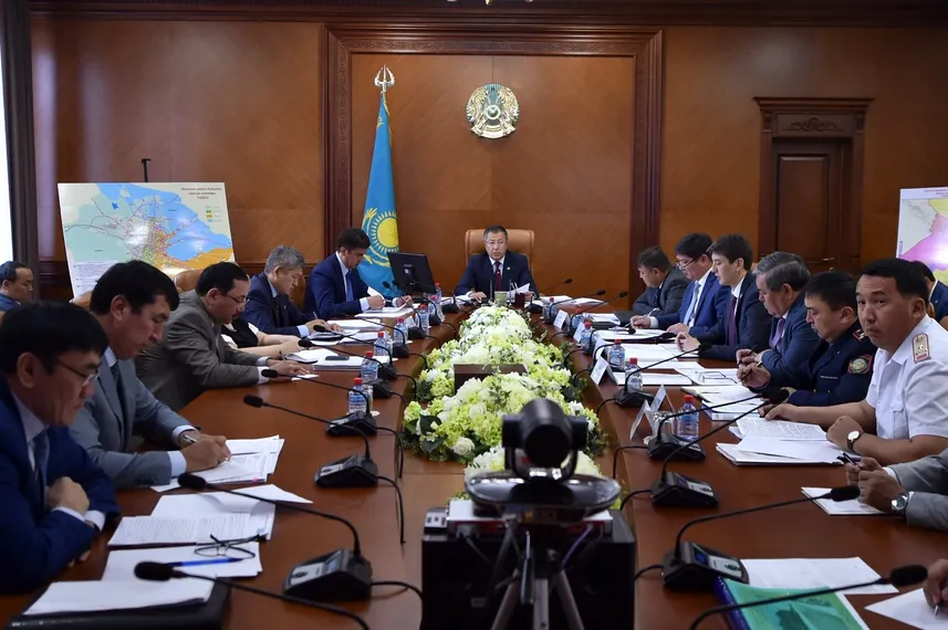 13 июня в акимате Южно-Казахстанской области под председательством главы региона Жансеита Туймебаева состоялось очередное аппаратное заседание в селекторном режиме. На повестке дня были рассмотрены вопросы по сохранению, накоплению и распределению паводковых вод, а также строительству гидротехнических сооружений (защитных дамб).