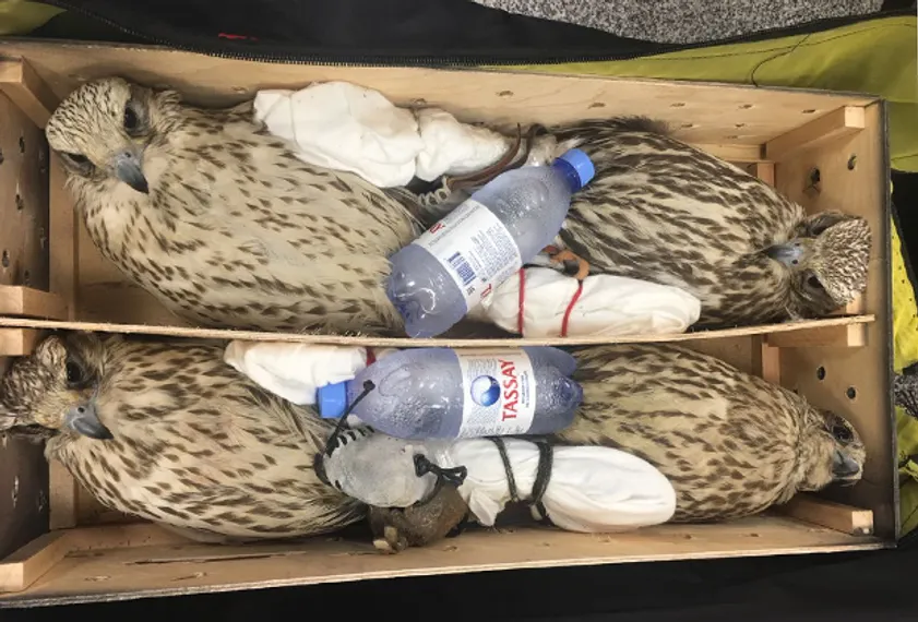 В международном аэропорту Астаны казахстанские пограничники пресекли попытку контрабандного вывоза в Объединенные Арабские Эмираты 23 особей исчезающего вида сокола. Об этом центру деловой информации Kapital.kz сообщили в пресс-службе ПС КНБ РК.