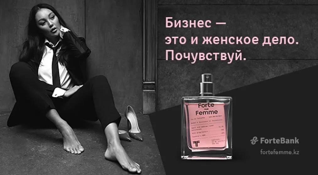 Своей рекламной компанией ForteBank стремится вдохновить женщин на открытие и развитие своего дела. В рамках проекта «Бизнес – это и женское дело» ForteBank выпустил аромат Forte pour Femme – «Сильная женщина», символизирующий успех, достижения и победы предпринимательниц.