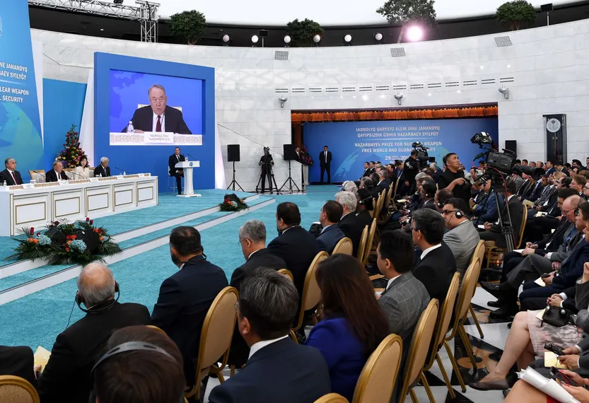 «В целях признания и поощрения заслуг политических и общественных лидеров и организаций мною в 2016 году была учреждена премия «За мир без ядерного оружия и глобальную безопасность». Я полностью поддерживаю решение отборочного Комитета о присуждении премии в нынешнем году бывшему генеральному директору МАГАТЭ Юкия Амано и исполнительному секретарю Организации по Договору о всеобъемлющем запрещении ядерных испытаний Лассине Зербо», - сказал Первый Президент Казахстана.