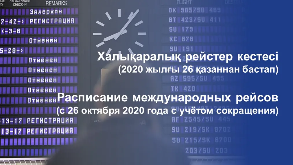 20) Нур-Султан – Москва – Нур-Султан (Эйр Астана – 1 раз в неделю, Аэрофлот – 1 раз в неделю).