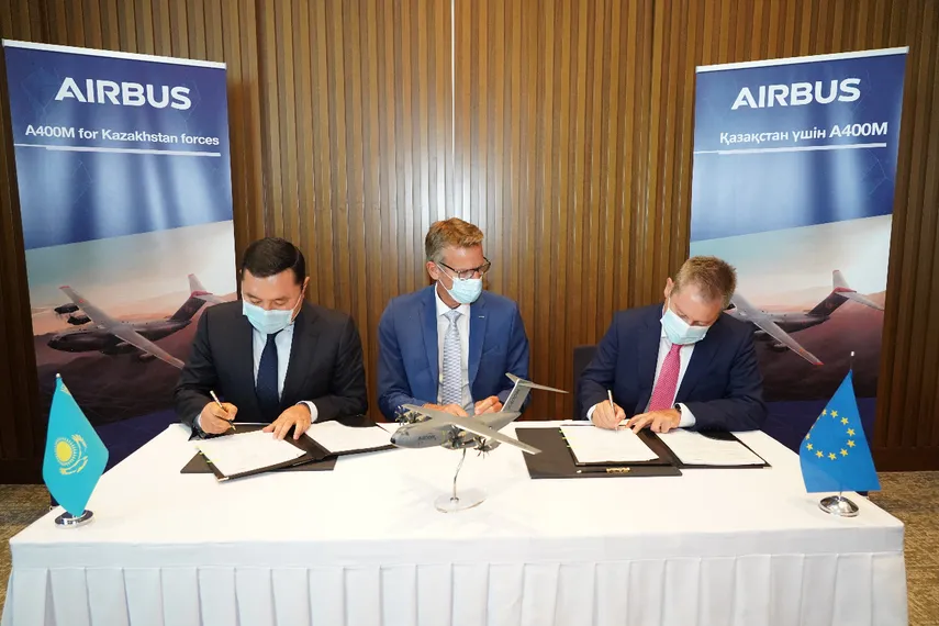 Церемонией подписания контракта на закуп двух самолетов А400М для нужд Министерства обороны РК завершились переговоры министра индустрии и инфраструктурного развития Бейбута Атамкулова с вице-президентом концерна AIRBUS Альберто Гутьерресом. Об этом сообщает пресс-служба Министерства индустрии и инфраструктурного развития РК.