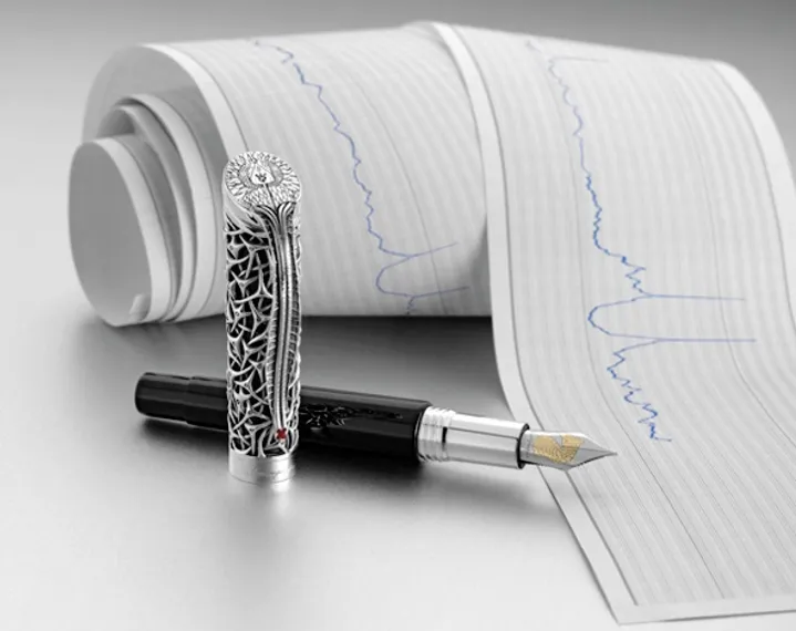 Едва ли не самый необычный пишущий инструмент последних лет создан при участии профессора клинической неврологии Ричарда Рестака, автора двух десятков книг о работе мозга. Уважаемый ученый консультировал ювелиров, которые изготовили колпачки ручек из литого золота и серебра в виде переплетения нейронов. Колпачок венчает рисунок из старинного медицинского фолианта, зажим выполнен в форме спинного мозга, а на пере выгравирован морской конек - символ гиппокампа, части лимбической системы головного мозга.