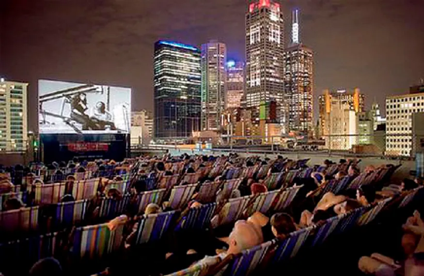 Кинотеатр Rooftop Cinema находится в австралийском Мельбурне, на крыше здания в шесть этажей. Перед сеансом гости могут полюбоваться живописным закатом прямо из кинозала. В кинотеатре показывают фильмы разных направлений, в том числе и артхаус.