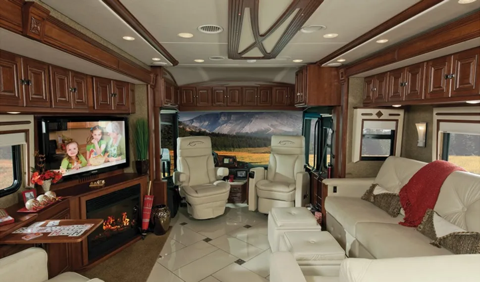 Снаружи этот фургон похож на автобус, а внутри напоминает роскошную виллу. Полы изготовлены из керамогранита, есть сейф, электрический камин, кладовая и холодильник. В потолок встроены светодиодные светильники. В салоне имеется место для просмотра телевизора, кухня, небольшая столовая с софой и столом-трансформером, спальня и даже гардероб. Стоимость чудо-фургона – от 382 тыс. долл.