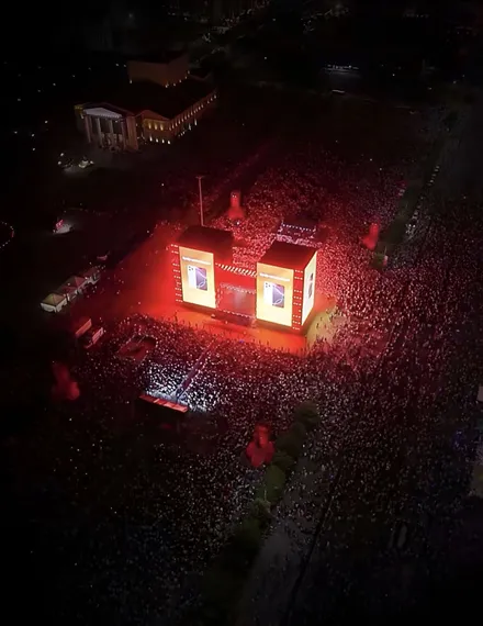 Специально для фестиваля установили уникальную сцену высотой 21 метр – это эквивалент 7-этажного здания. Четырехсторонняя звуковая система обеспечила сбалансированное звучание на всей площади, а 900 м² LED-экранов создавали визуальный эффект полного погружения. Помимо этого, двухуровневая вращающаяся сцена - редкий элемент даже по международным стандартам.