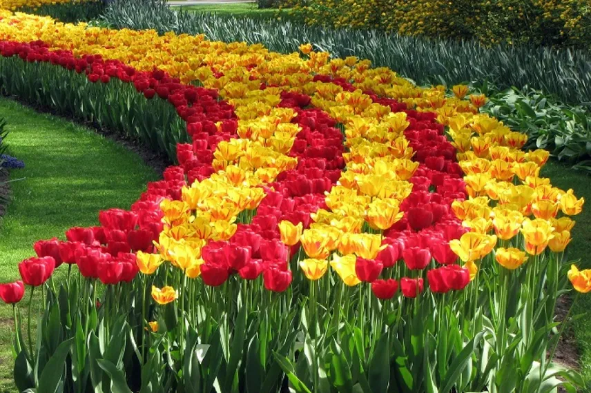 При этом в пресс-службе отметили, что тюльпаны высаживают по специально разработанным схемам, например, в виде национального орнамента, логотипа города или геометрических фигур.
