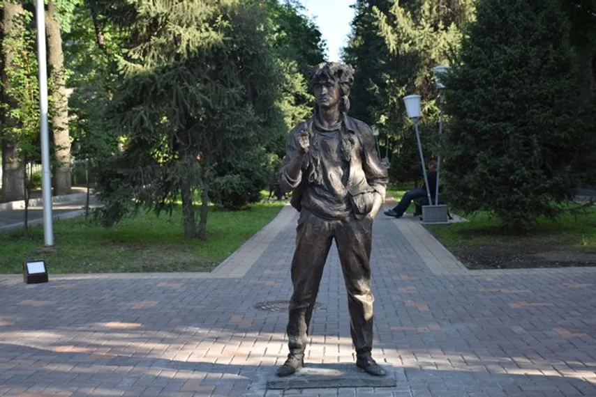 В Алматы на улице Тулебаева появился памятник легендарному солисту группы «Кино» Виктору Цою. В этом году фильму «Игла», снятому казахстанским режиссером Рашидом Нугмановым в 1988 году в Алма-Ате, исполняется 30 лет. Главную роль в киноленте исполнил культовый музыкант, поэт, солист группы «Кино» Виктор Цой.