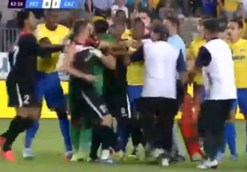 По итогам потасовки судья показал три красных карточки, в том числе Борнеску и Бавабу. Арбитр добавил ко второму тайму 15 минут, во время которых показал еще три красных карточки (игрокам «Газ Метана»). Кроме того, по ходу игры было показано 11 желтых карточек.