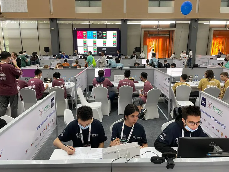 Казахстанские студенты соревнуются на чемпионате с 2003 года. В этом году в команду, которая представляла РК, вошли воспитанники Международного университета информационных технологий Абай Баймуканов, Батыр Сардарбеков, Парасат Казырканов и их тренер Айбар Куанышбай. Во время ICPC они решали сложные нестандартные задачи по программированию, математике и на данный момент относятся к элитной части программистов Казахстана. Каждый год до финала ICPC доходят 300 человек со всего мира.