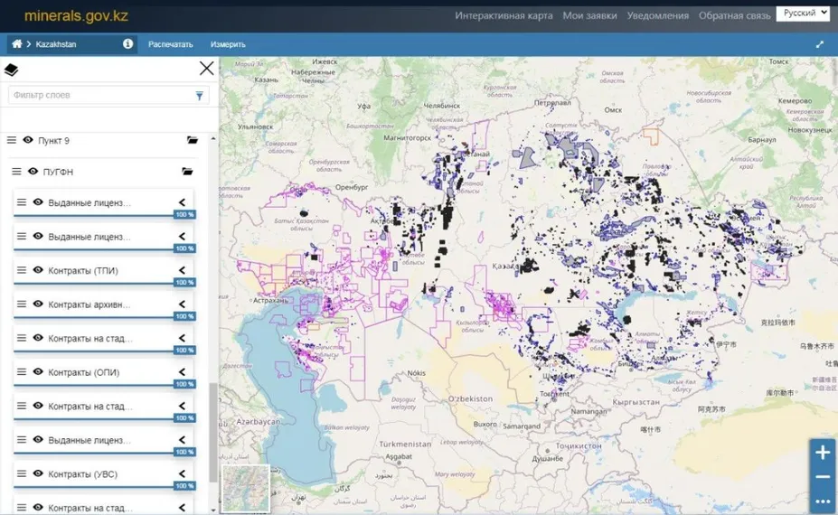 Министерство цифрового развития, инноваций и аэрокосмической промышленности, нацкомпания «Қазақстан Ғарыш Сапары» и министерство индустрии и инфраструктурного развития разработали платформу Minerals.gov.kz. На сайте можно посмотреть распределение лицензионных участков, сервис также поможет формировать отчеты и следить за деятельностью недропользователей, сообщает корреспондент центра деловой информации Kapital.kz со ссылкой на пресс-службу МЦРИАП.