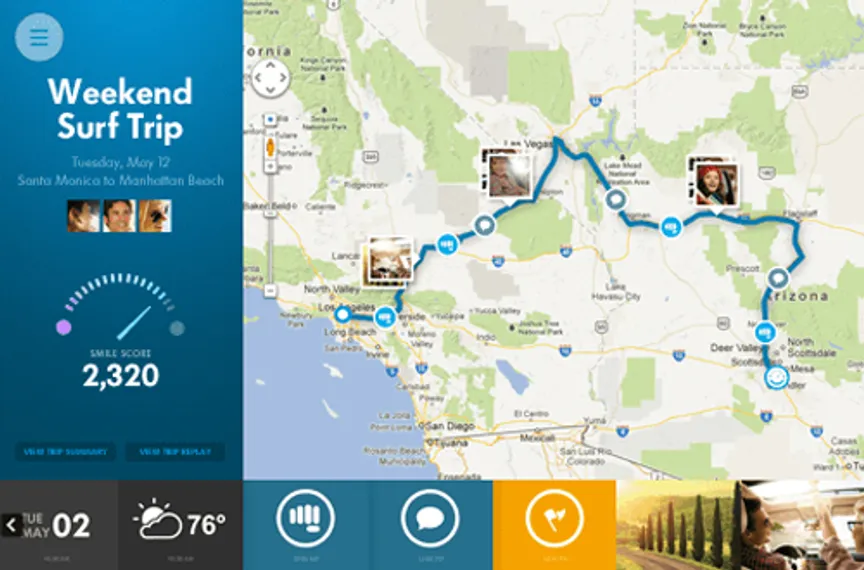 Смартфон или планшет с установленной программой SmileDrive подключается к бортовой системе автомобиля по беспроводному каналу Bluetooth и собирает данные о поездке: местоположение, время в пути и даже текущую погоду. Маршрут отображается на карте Google Maps. Даже если автомобиль не поддерживает подключение мобильного устройства по Bluetooth, приложение все равно будет агрегировать сведения о поездке.