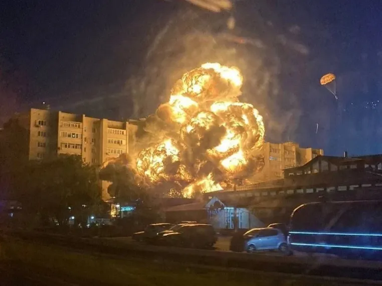 Огнем оказались охвачены пять этажей девятиэтажного жилого здания. По данным Минобороны РФ, загорелось разлившееся топливо. Огонь распространился на площади 2 тыс. кв. метров. По предварительным данным властей региона, пострадали 17 квартир.