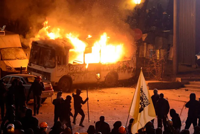 Напомним, беспорядки в центре Киева начались вечером 19 января. После организованного оппозицией «народного вече» некоторые активисты попытались прорвать оцепление из бойцов «Беркута» в правительственном квартале. Милиционеров закидывали бутылками с зажигательной смесью и кусками брусчатки, те применили против демонстрантов свето-шумовые гранаты, резиновые пули и слезоточивый газ. В результате пострадали более 200 человек с обеих сторон, были сожжены четыре милицейских автобуса и два спецавтомобиля, кроме того, сгорела касса стадиона «Динамо».