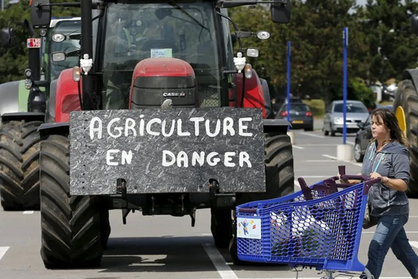 3 сентября французские фермеры устроили массовую акцию протеста в центре Парижа, они приехали на акцию более чем на 1300 тракторах. При этом протестующие по ходу акции блокировали главные дороги, ведущие к французской столице. Фермеры были недовольны падением доходов сельского хозяйства, причем больше всего от падения цен пострадали производители мяса и молочных продуктов.