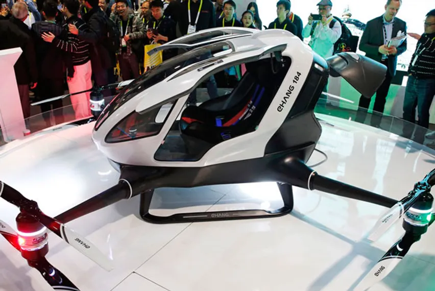 Китайская компания EHang, занимающаяся производством любительских дронов, показала на выставке CES-2016 летающее транспортное средство весом около 200 килограммов, которое она собирается вывести на рынок в ближайшем будущем, об этом сообщает портал hi-news.ru.