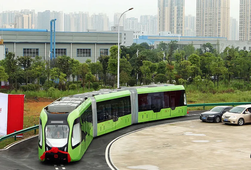 Исследовательский институт железнодорожной компании CRRC запустил первый безрельсовый электропоезд в китайской провинции Хунань. Скоростной поезд с автономными рельсами (ART) представляет собой нечто среднее между поездом и автобусом. Транспортное средство оборудовано резиновыми шинами, поэтому ART может двигаться по любой дороге общего пользования, пишет m.hightech.fm.