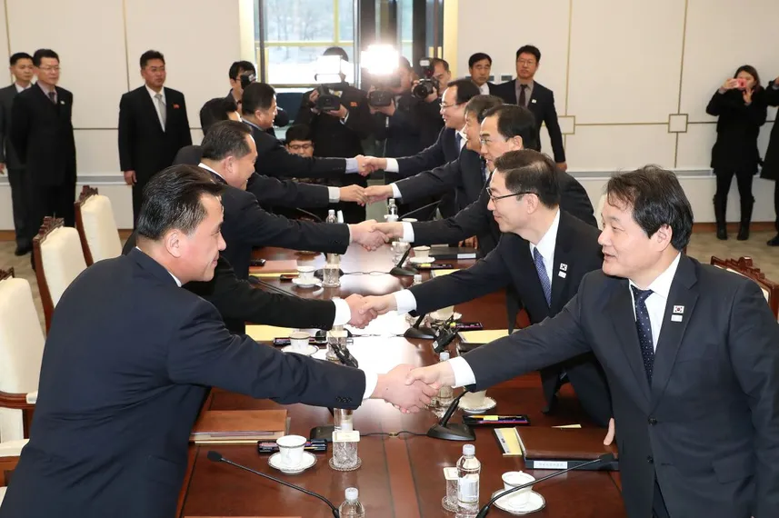 Первые за более чем два года официальные переговоры между двумя Кореями стартовали во вторник утром, 9 января, в приграничной деревне Пханмунджом в демилитаризованной зоне, разделяющей два корейских государства. На время обеда делегации разделились. Однако ожидается, что обсуждение продолжится.