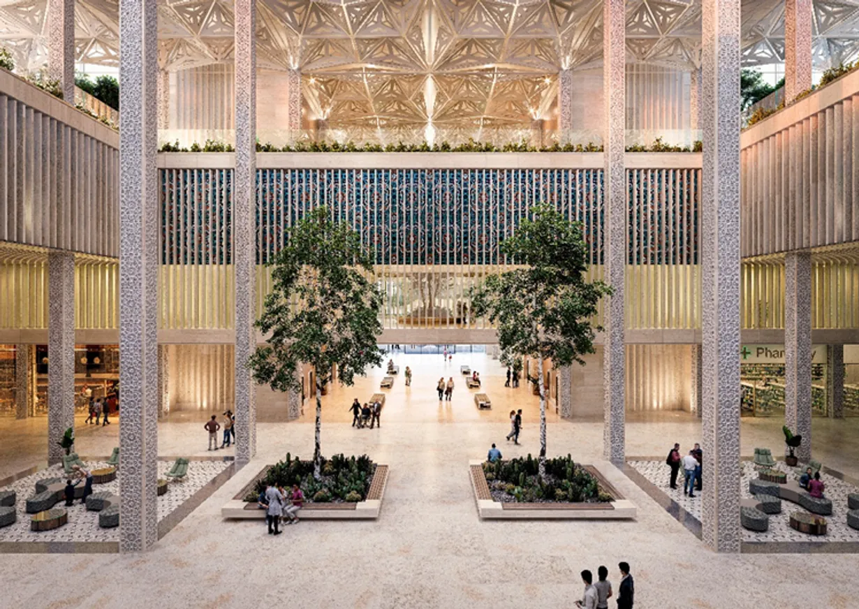 Проект здания госпиталя был разработан крупнейшим международным архитектурным бюро HKS (США). Его главная особенность — модульная архитектура, которая обеспечивает гибкую адаптацию пространства под новые медицинские технологии и будущие вызовы здравоохранения. Особое внимание уделено зонированию: маршруты пациентов, персонала и логистики разведены. Это повышает безопасность, снижая риск переноса какой-либо инфекции, сокращает время перемещений и улучшает клинические результаты.