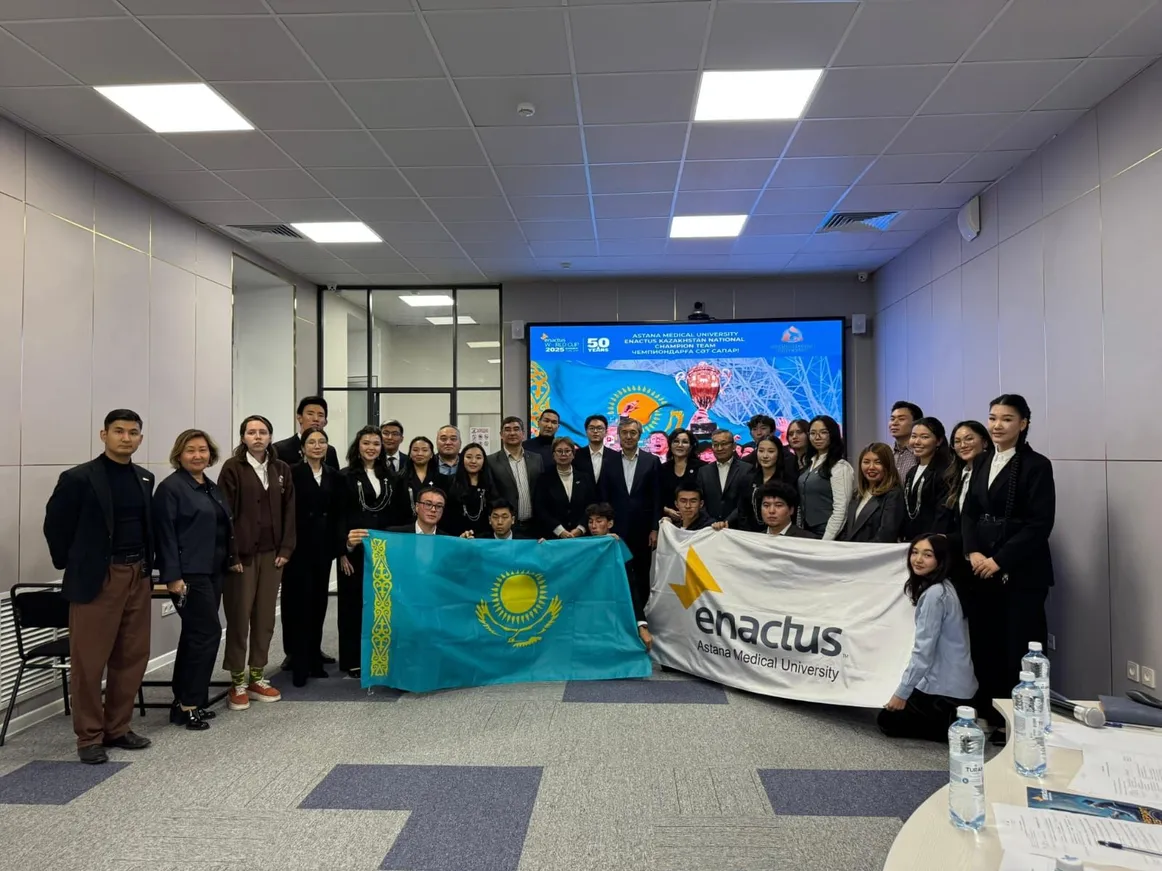 Отдельная благодарность ректорату Медицинского университета Астана, ректорату Astana IT University, администрации Caspian College за поддержку студенческих команд и участие в мировом кубке ENACTUS World Cup 2025.
