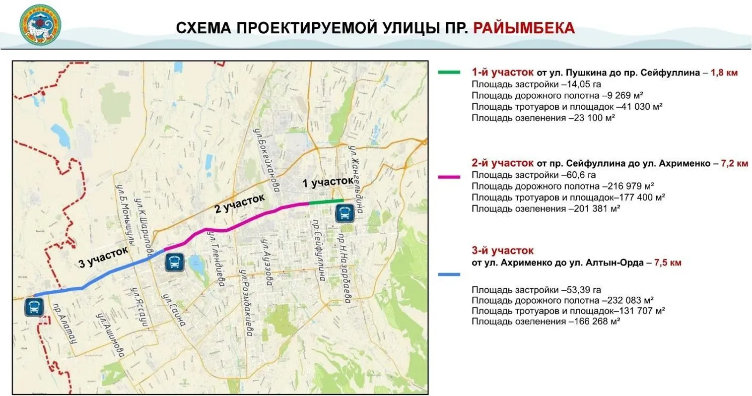 3) ул. Ахрименко — ул. Алтын Орда (7,5 км)